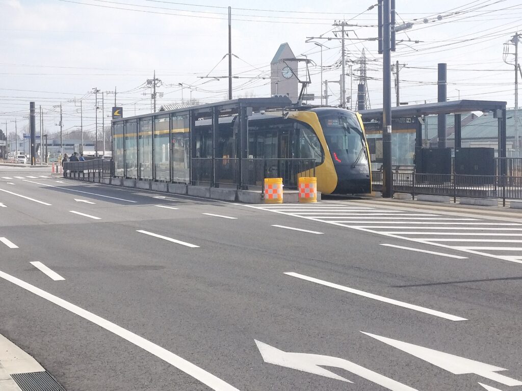 芳賀バイパスとの合流地点では一部宇都宮ライトレール(路面電車)が通行する区間があるので、タイミングが合えば間近で見ることが出来ます。