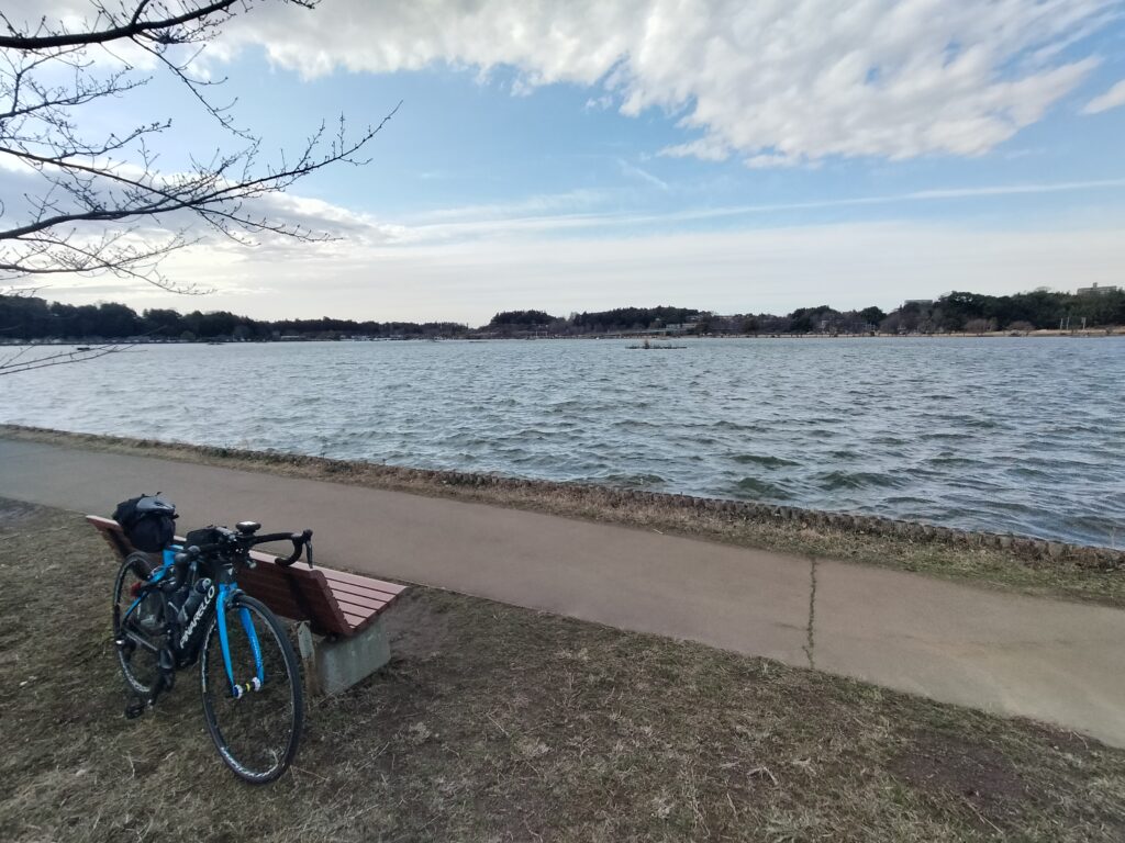 強い風にいじめられながらも水戸市内を無事に通過して、15時丁度に千波公園に到着しました。